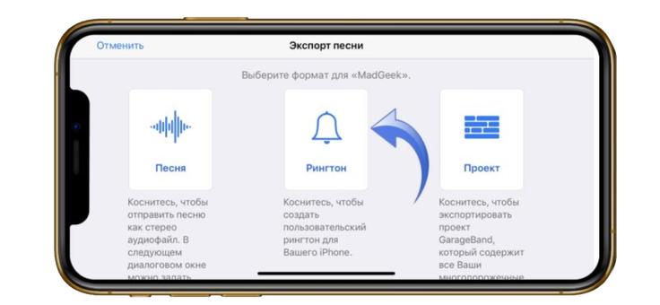 И наконец, вы можете установить мелодию на ваш Айфон. Доступно три способа: стандартный рингтон, стандартный звук сообщения или присвоить контакту.