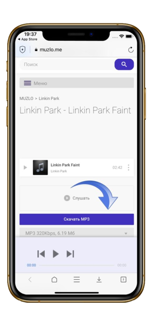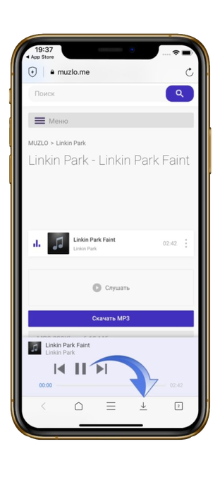 По завершению скачивания откройте браузер и найдите желаемый трек, например, «Linkin Park Faint скачать». Выбираете наиболее подходящий сайт и нажимаете на кнопку «Скачать».