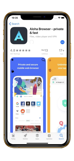 Существует множество способов, мы рассмотрим один из них с использованием стороннего браузера под названием Aloha (Aloha Browser). Его вы можете найти и скачать в магазине App Store.