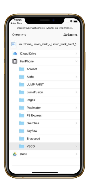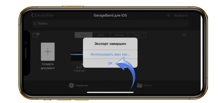 Теперь следует нажать на «Сохранить в файлы» и выбрать папку, в которой будет храниться файл. Мы сохраним в iCloud Drive.