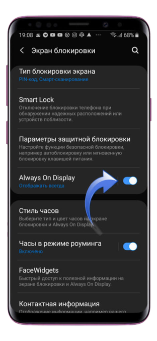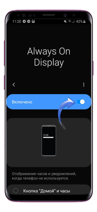 Последний шаг — активировать верхний переключатель Always on Display. Вот и все, получайте идеальный опыт от пользования Samsung Galaxy.