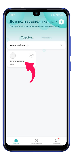 Откройте Mi Home и нажмите на кнопку с моющим пылесосом Сяоми.