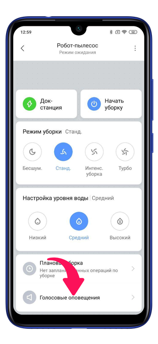 Затем вы окажетесь в меню для работы с Mi Robot Vacuum Mop/Mop P.