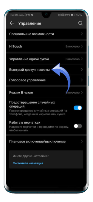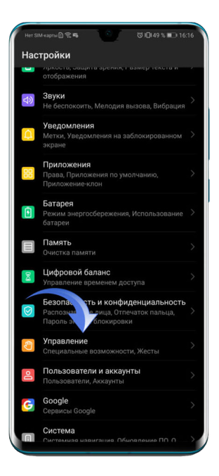 Флагманские модели Хуавей предлагают еще одно решение. Сначала открываете «Настройки» и выбираете пункт «Управление».
