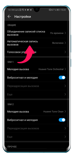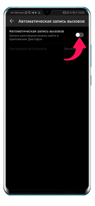 И активируйте единственный пункт. Также в данном меню вы можете настроить автозапись на вашем Huawei.
