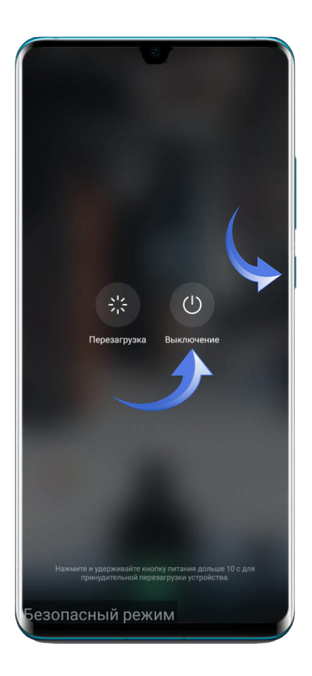 Первый шаг — выключение смартфона. Вам потребуется нажать на кнопку питания, а затем — «Выключение».