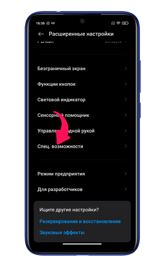 Затем отыщите «Специальные возможности».