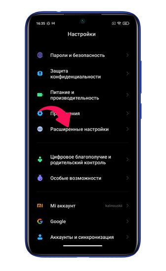 Выберите пункт «Расширенные настройки».