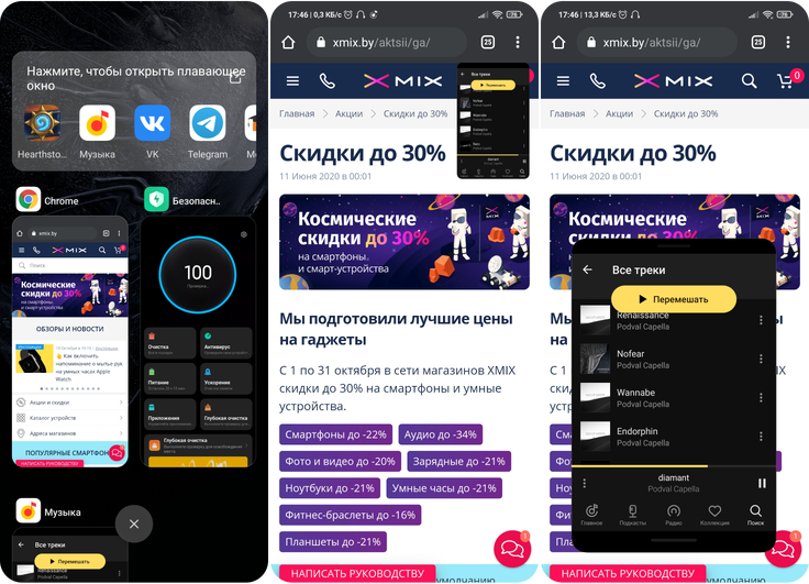 На замену разделению экрана пришли плавающие окна. Эта функция гораздо удобнее и позволяет выполнять действия в двух приложениях одновременно. Размер и местоположение плавающего окна можно регулировать. Его создание происходит из меню запущенных приложений.
