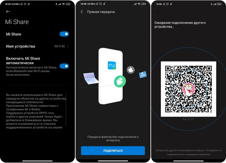 Передача файлов без интернета возможна. Для этого и предназначено приложение Mi Share, которое присутствовало и в предыдущих версиях прошивки. Но сейчас производитель объединился с OPPO и Vivo для создания единого сервера. Обмен файлами осуществляется за считанные секунды, есть лишь одно условие — смартфоны должны находиться поблизости.