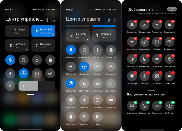 В MIUI 12 пользователи могут выбрать привычный вариант шторки уведомлений либо центр управления. Для открытия шторки достаточно потянуть вниз из любой точки рабочего стола. Набор виджетов можно изменить, как и их месторасположение. Также можно выбрать различное отображение входящих уведомлений: от MIUI или Android.