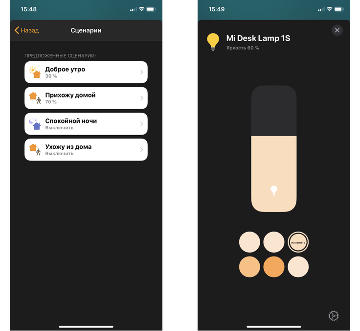 После подключения доступны автоматические сценарии, регулировка температуры и яркости. Также возможно управление с помощью голосового помощника Siri.