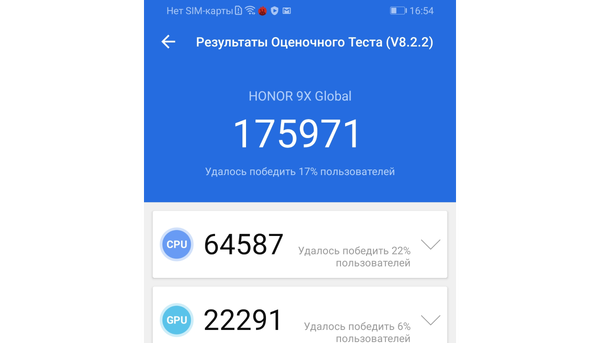 За работу гаджета отвечает фирменный процессор Kirin F710 в паре с графикой Mali-G51 MP-4. Чипсет ранее использовался во множестве смартфонов предыдущих лет. Похвастаться сверхвысокой производительностью 9X не может, но для стандартных сценариев его хватает с головой. В синтетическом тесте Antutu смартфон показал результат в 175 тысяч.