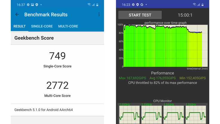 Как видно из скриншотов выше, синтетических тестов S10 Lite абсолютно не боится. Плавная и приятная работа фирменного интерфейса также благоприятно сказывается на общем впечатлении. Протестировав смартфон на нескольких производительных играх, каких-либо лагов словить не удалось.