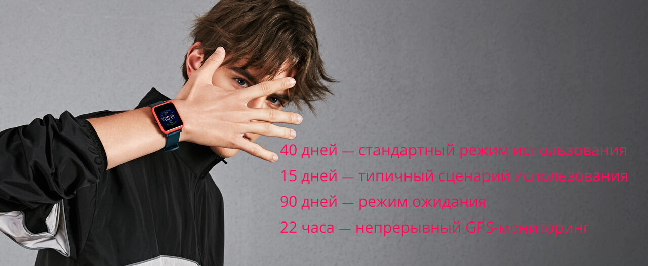 Huami оснастила умные часы емким аккумулятором, который позволяет им работать до 40 дней в стандартном режиме использования. Для зарядки потребуется всего 2,5 часа.