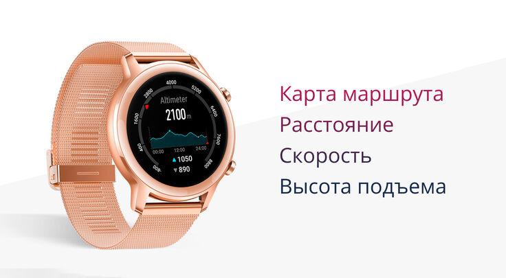 Умные часы Хонор имеют 2 системы спутниковой навигации, благодаря которым осуществляется измерение скорости во время бега, ходьбы или велоезды и пройденное расстояние. Также устройство может измерять высоту подъема с помощью альтиметра и построить карту вашего маршрута.