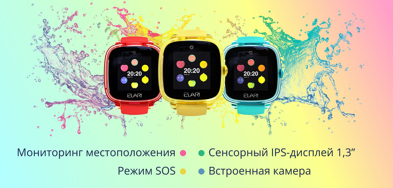 Умные детские часы Elari KidPhone Fresh представлены в 3 расцветках: зеленой, красной и желтой. Яркое исполнение дополняет 1,3-дюймовый IPS-экран, интерфейс которого оформлен во фруктовом стиле. Корпус эргономичного гаджета выполнен из пластика, ремешок — из гипоаллергенного дышащего силикона.