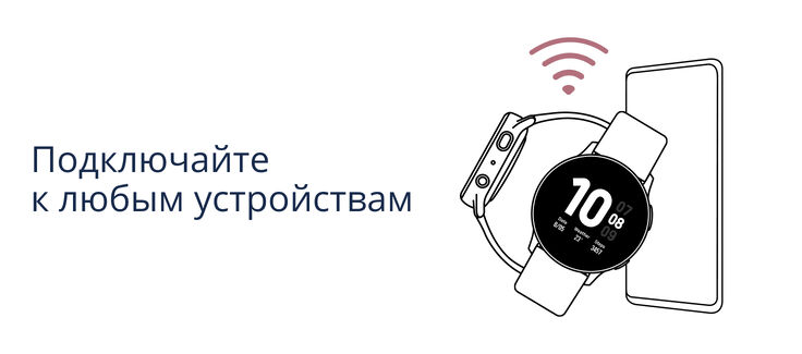 Galaxy Watch Active 2 можно подключить к смартфону любого бренда на базе ОС Android 5.0+ с ОЗУ от 1,5 ГБ или iOS 9.0+. Помимо смартфонов, подключение возможно и к другим устройствам. В качестве беспроводных интерфейсов поддерживается Wi-Fi и Bluetooth.