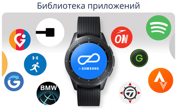 Вы можете установить на Самсунг Галакси Вотч полезные приложения и игры, специально адаптированные под круглый циферблат часов. Для этого предназначена библиотека Galaxy Apps. Объем встроенной памяти устройства — 4 ГБ.