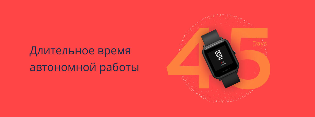 Смарт-часы Amazfit Bip Lite оснащены аккумулятором емкостью 200 мАч. Полного заряда будет достаточно для 45 дней работы в обычном режиме. В режиме ожидания часы способны проработать до 120 дней. Для пополнения энергии потребуются скромные 2,5 часа.