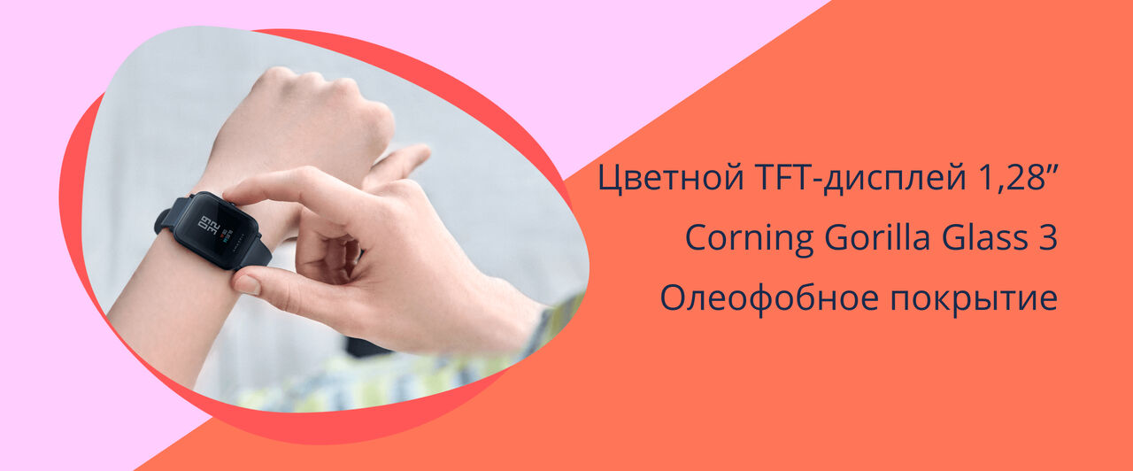 Умный часы Сяоми Амазфит Бип Лайт имеют 1,28-дюймовый трансфлективный дисплей. Он защищен стеклом Corning Gorilla Glass 3, которое не допустит появления царапин на экране. Также имеется олеофобное покрытие, отталкивающее воду и жиры. Просматривайте данные на дисплее даже в яркий солнечный день, для этого достаточно поднять запястье.