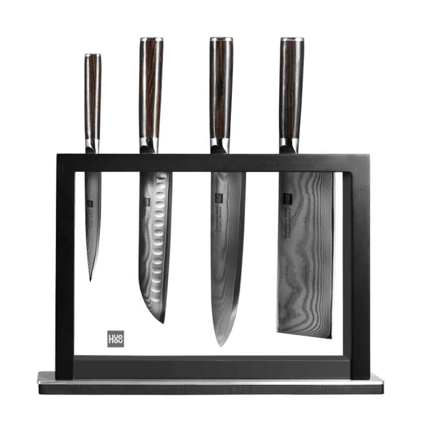 Набор ножей из дамасской стали с подставкой Huo Hou Set of 5 Damascus Knife Sets HU0073