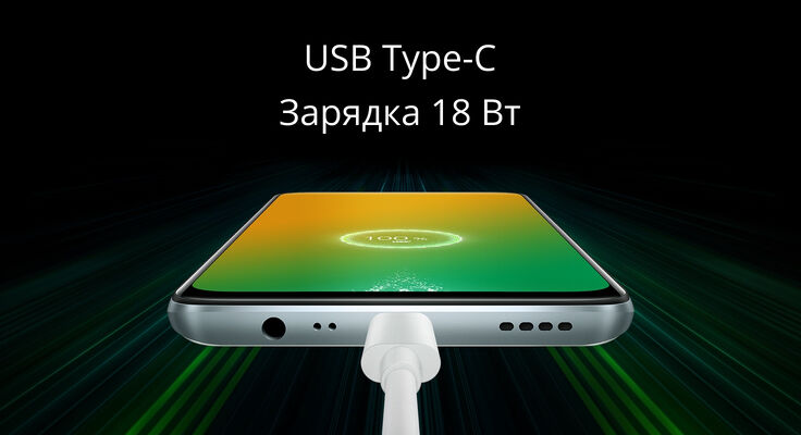 Для зарядки используется порт USB Type-C. В комплекте предусмотрен блок питания для быстрой зарядки мощностью 18 Вт.