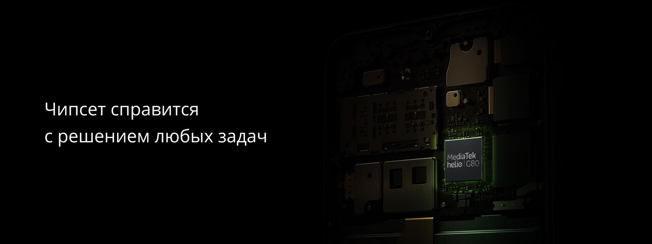 Смартфон Realme 6i оснащен 8-ядерной мобильной платформой MTK Helio G80 с тактовой частотой ядер до 2,0 ГГц и графическим процессором Mali G52 1000 МГц. Они обеспечивают лучшую производительность по сравнению с предыдущим поколением. Гаджет предлагает высокое качество изображений, бесперебойную и стабильную работу во время игр.