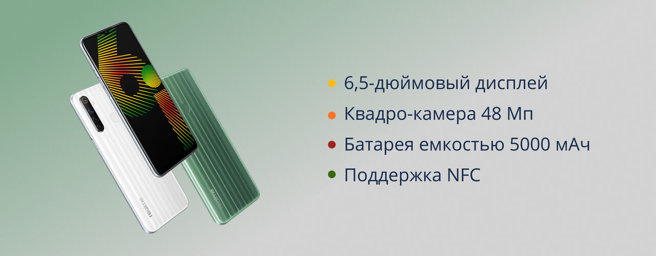 Realmi 6i работает от емкого аккумулятора на 5000 мАч. Сама батарея получила тройную систему защиты, обеспечивающую длительный срок службы. Аппарат способен проработать: