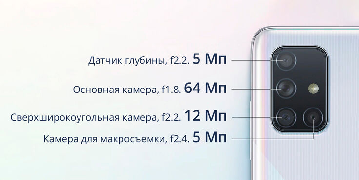 Возможности 4-модульной «умной» камеры Galaxy A71 безграничны: прекрасные панорамные и пейзажные снимки, потрясающие портретные фото с размытым фоном в любое время суток и впечатляющие фотоснимки в режиме макросъемки. Идеальный смартфон для реализации любых творческих фотоидей.