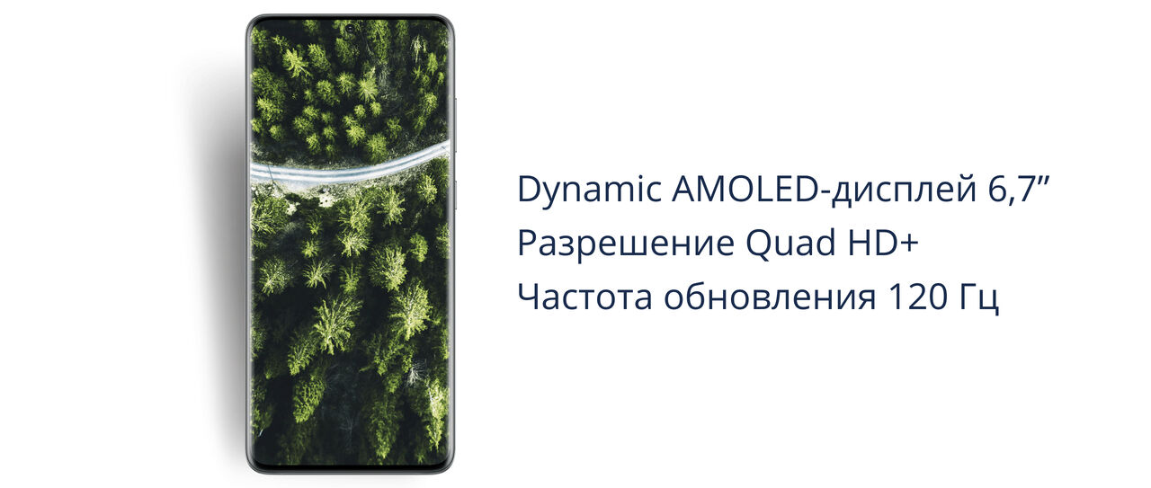 Смартфон Самсунг имеет большой AMOLED-дисплей диагональю 6,7 дюйма. Разрешение достигает 3200 × 1440 пикселей, 16 млн цветов. Все это вкупе с отличной яркостью и высокой контрастностью доставит максимум удовольствия при просмотре любого контента или во время мобильного гейминга. Кстати, частота обновления экрана теперь составляет 120 Гц — более быстрый отклик и более плавный скроллинг.