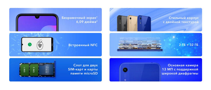 Оптимальный объем памяти, 2 ГБ оперативной и 32 ГБ внутренней, позволяет Honor 8A решать любые повседневные задачи и хранить необходимые файлы.