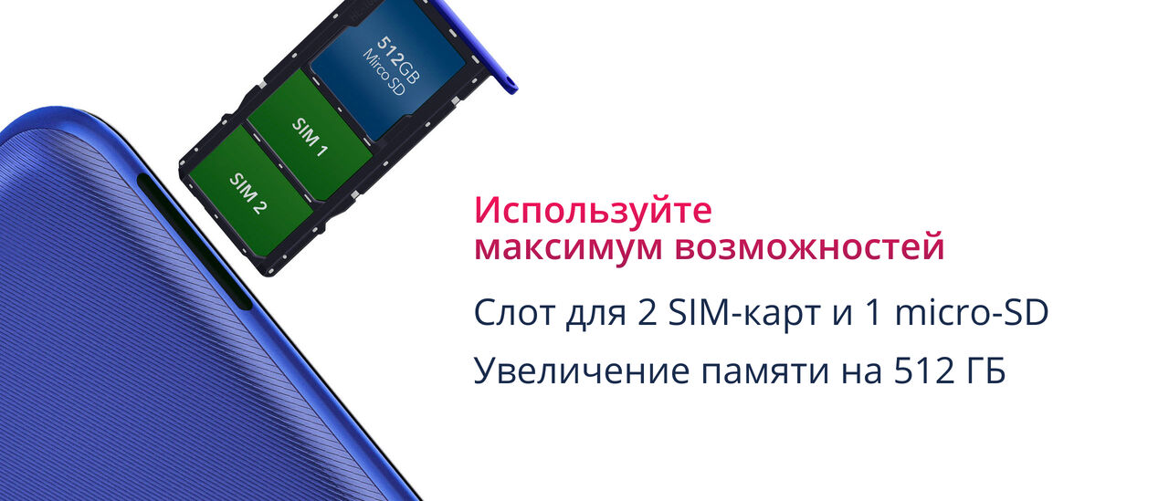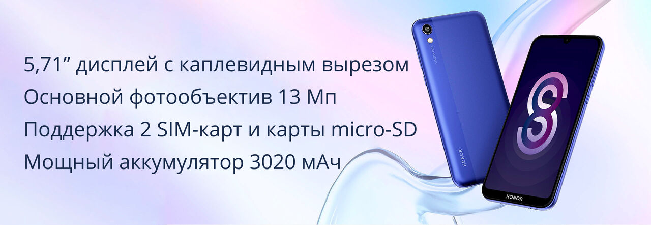 Телефон поддерживает установку двух SIM-карт с поддержкой технологии связи VoLTE и HD-качеством вызовов. Также Honor 8S предусматривает возможность установки карты памяти micro-SD объемом до 512 ГБ, чтобы вы могли хранить все ценные и важные файлы в одном месте.
