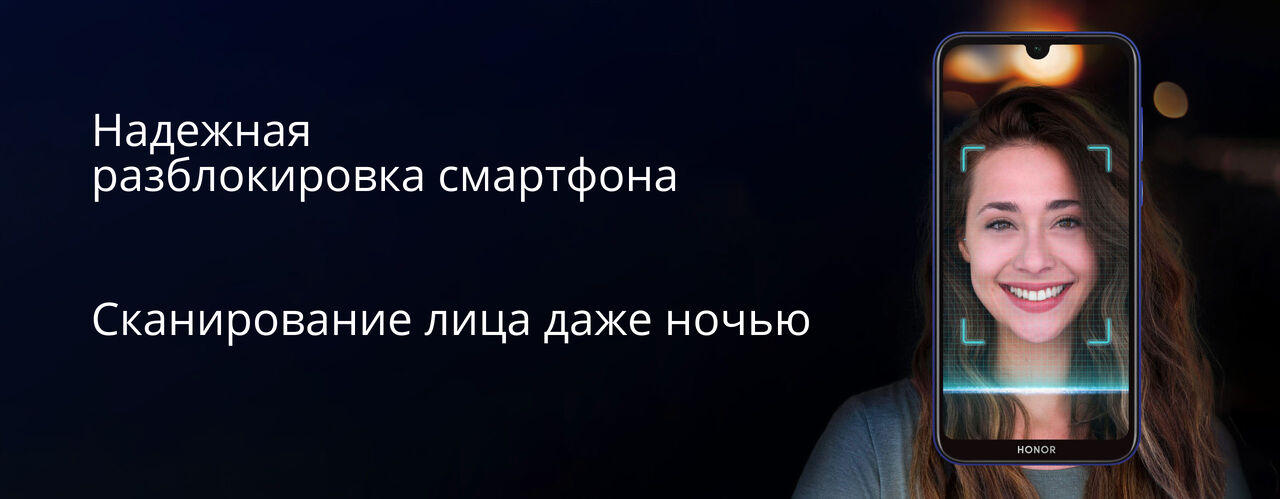 В темной области, имеющей форму капли, установлены фронтальная фотокамера, разговорный динамик и датчики освещенности, благодаря чему увеличивается площадь полезной поверхности Honor 8S. Используйте функцию разблокировки устройства с помощью технологии распознавания лица в любое время суток. Кроме того, она позволяет надежно защитить смартфон, так как доступ к гаджету может получить только его владелец.
