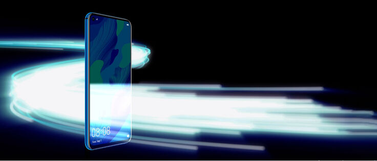 Huawei Nova 5T оснастили безрамочным FullView-дисплеем, занимающим практически всю лицевую панель. Маленький фронтальный объектив расположен в верхнем левом углу и почти незаметен, благодаря чему корпус выглядит лаконичным и стильным.