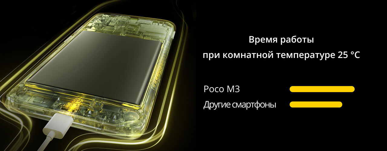 Чтобы прослушивание музыки и просмотр видео доставляли лишь одно удовольствие, смартфон Poco M3 оснастили двойными динамиками. Они прошли сертификацию Hi-Res Audio, которая свидетельствует о высоком разрешении аудио.