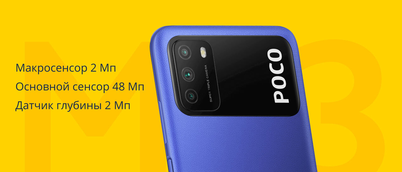 Poco M3 получил Dot Drop дисплей диагональю 6,53 дюйма с разрешением 2340 × 1080 пикселей. Соотношение сторон — 19,5:9, а площадь экрана занимает 90,34% по отношению к корпусу.