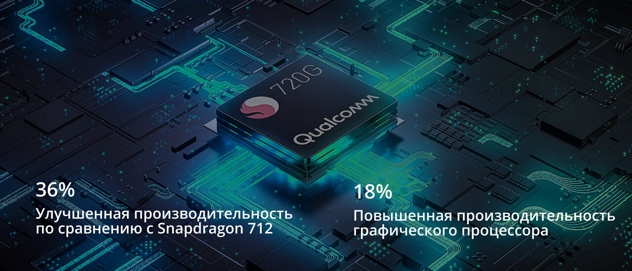 Смартфон Redmi Note 9S оснащен производительной мобильной платформой Snapdragon 720G. Это 8-ядерный чипсет с частотой обновления 2,3 ГГц. Быстрая и плавная работа аппарата гарантирована, он справится с любой поставленной задачей.