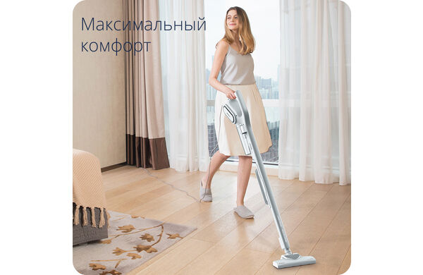 Вертикальный пылесос обладает эргономичной ручкой, длинным кабелем на 4,5 м и поворотной конструкцией щетки. Все это обеспечивает простую уборку даже в труднодоступных местах.