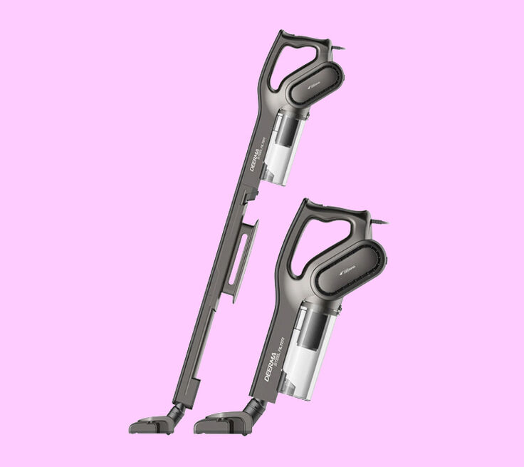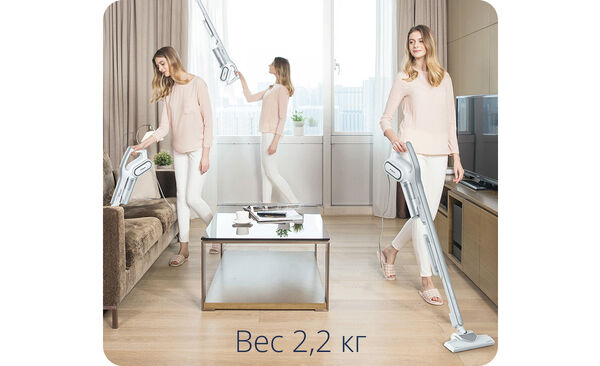 Вертикальный пылесос Дирма позволит вам очистить не только пол, но и мебель, и даже потолки от паутины. Он имеет разборную конструкцию и легкий вес 2,2 кг, благодаря чему управление становится максимально комфортным.