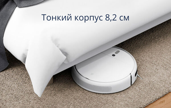 Xiaomi Mi Robot Vacuum Mop имеет тонкий корпус высотой 8,2 см. Такие размеры позволяют пылесосу очистить любой угол дома, в том числе под предметами мебели.