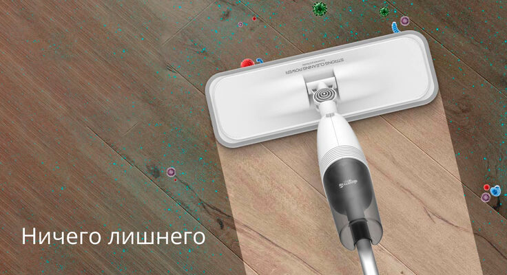 Deerma Water Spray Mop избавит вас от необходимости использовать ведро. Добавьте воду и дезинфицирующее средство для мытья полов, распылите и очистите поверхность. Быстро и просто.